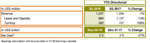 2018 Directional revenue guidance is maintained at around US$1.7 billion, with around US$1.3 billion from Lease and Operate and around US$400 million from Turnkey. 2018 Directional EBITDA guidance is updated from “around” to “above” US$750 million.